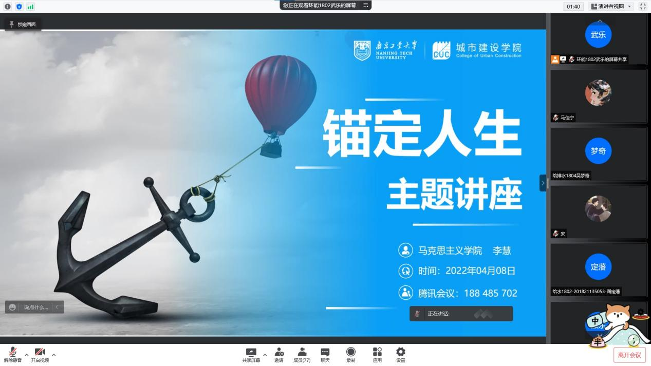 讲座伊始,李老师首先分享了何谓“职业锚”,为同学们细致的讲述了八种职业锚类型,鼓励同学们在毕业季的当下,积极“锚定”职业“航向”,科学择业就业。最后,同学们询问了目前在就业工作中所遇到的困难和问题,李慧老师对提出的问题进行了逐一解答。