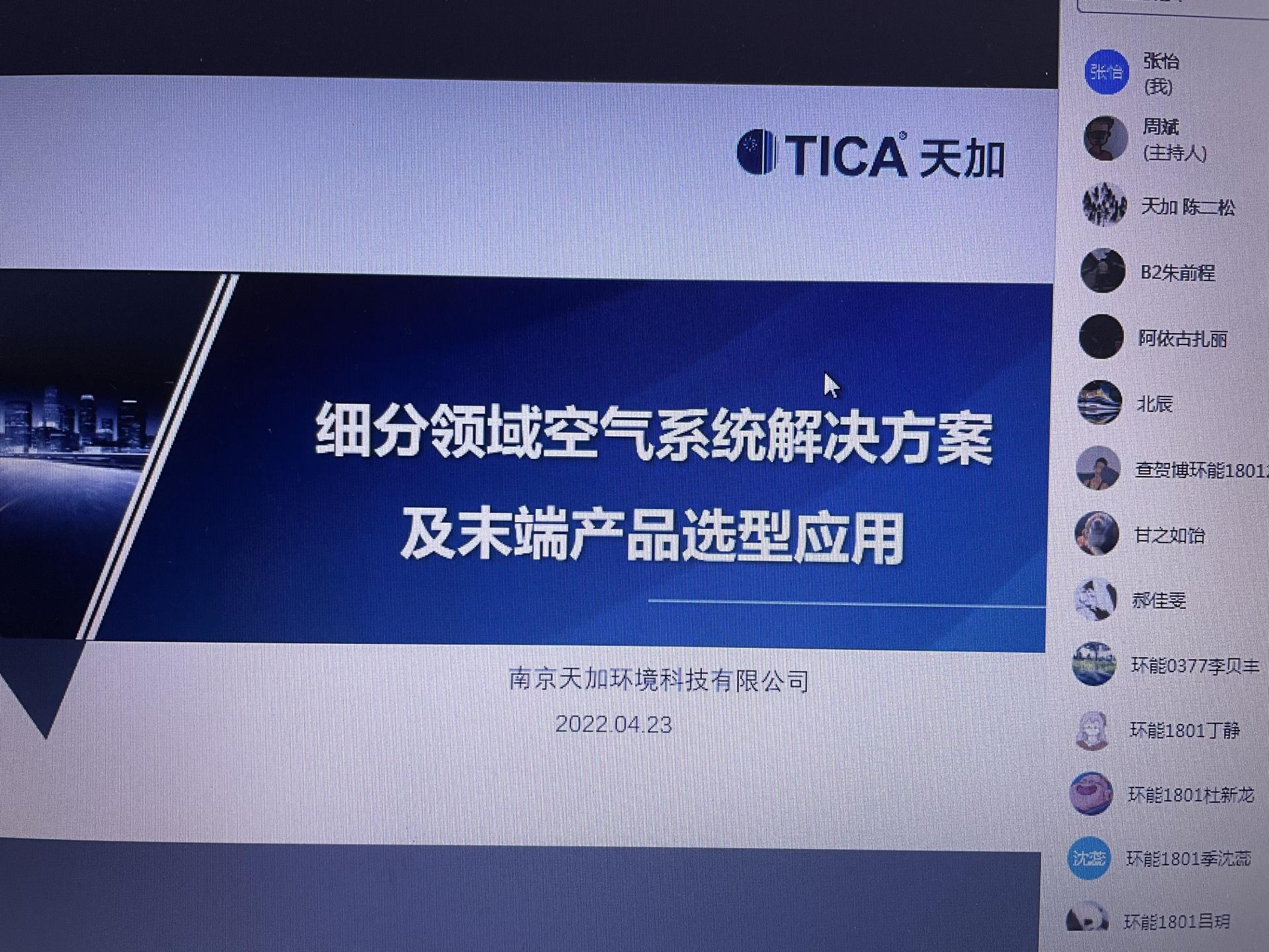 2022年4月23日,在公司VSport建筑环境与能源应用专业18级同学进行毕业设计期间,应暖通系邀请,南京天加环境科技有限公司的陈二松经理在线上给同学们进行了“细分邻域空气系统解决方案及末端产品选型应用”的专题讲座。