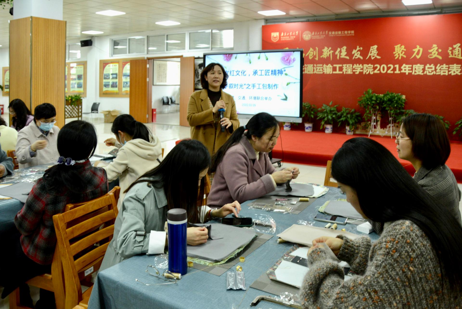 在这人间三月芳菲艳之际,为庆祝国际“三八”女神节,2022年3月9日下午,在校工会,城建、交通、环境公司党委的大力支持下,三个公司分工会联合举办“传女红文化,承工匠精神”-“手叙时光”之手工包制作活动,全校70余名女教职工在曼妙时光中体会匠心,发扬中国妇女心灵手巧、勤劳智慧的传统美德。