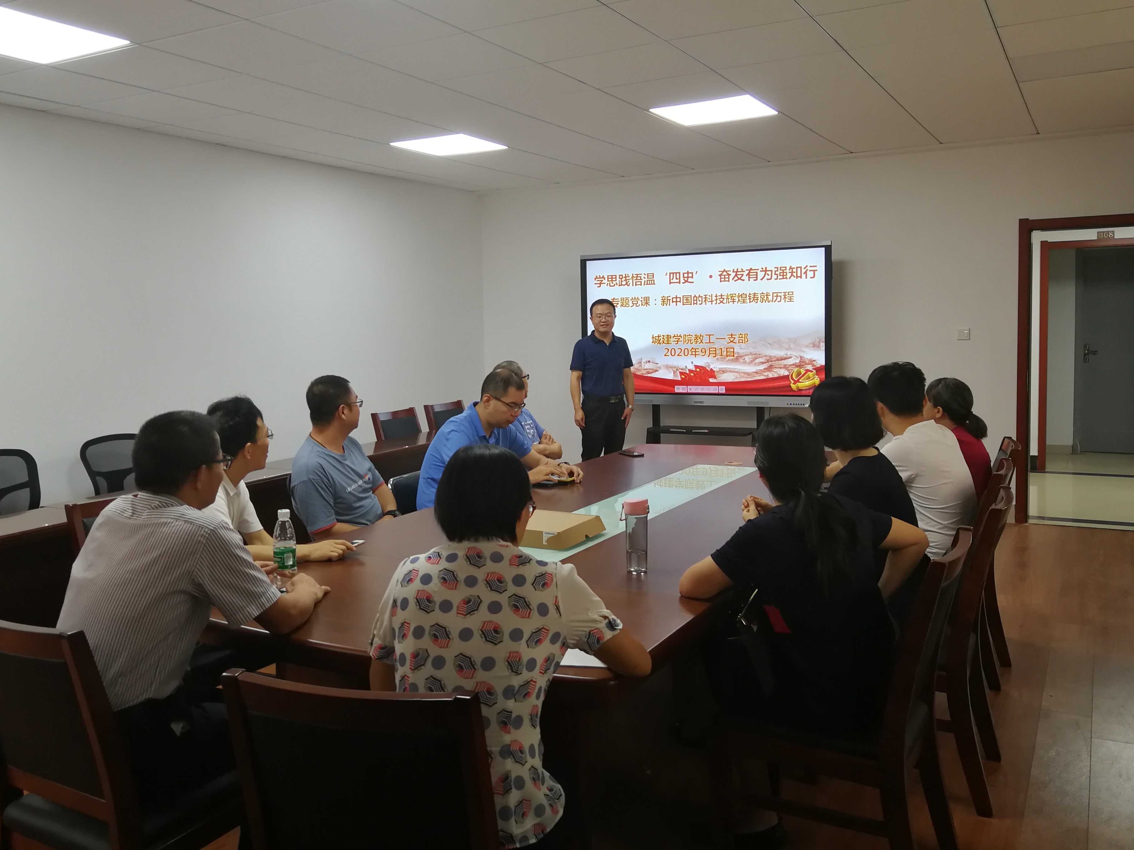 2020年9月1日上午,VSport教工一支部举行了学思践悟温‘四史’·奋发有为强知行”主题教育活动,由支部书记、副经理牛晓峰同志给支部党员讲授“新中国的科技辉煌铸就历程”专题党课。