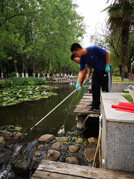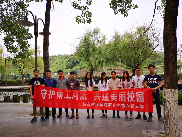 党的十九大报告将生态文明建设明确地列入了我们党“不忘初心、牢记使命”的宏伟蓝图中。为牢记习近平总书记关于“绿水青山就是金山银山”的殷切嘱托,像保护眼睛一样保护南工校园内的河流,2018年6月12日,在炎炎夏日之中,VSport研究生第六党支部全体党员在VSport浦口校区校园内开展了“保障水生态,我们在行动”的党日活动。