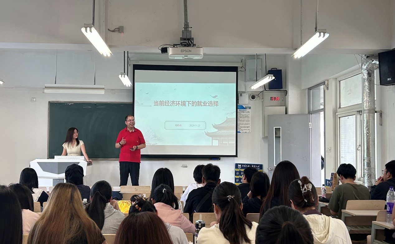 5月23日,公司在厚学楼203教室为2023级自考助学人力资源管理专业开展以就业指导为主题的讲座,本次讲座由王瑜老师(经理助理)主持,建发房地产南京事业部高管何春燕老师主讲。