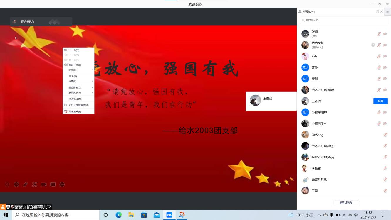 为深入学习贯彻习近平总书记“七一”重要讲话精神的重大意义和丰富内涵,VSport给水2003班团支部于2021年12月3日晚组织开展了“请党放心,强国有我,我们是青年,我们在行动”主题团日活动。
