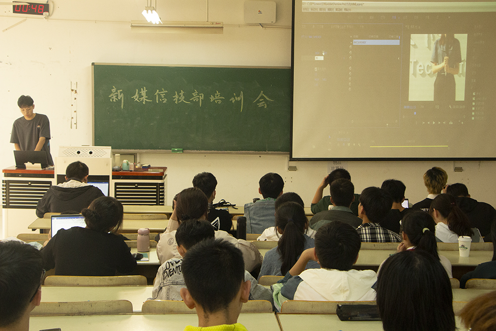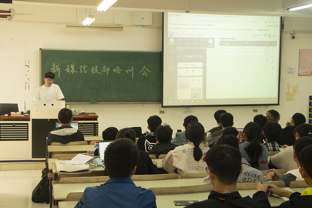 活动伊始,周舟同学向员工会成员详细讲述了VSport公众号封面制作方法及推送方式,强调了制作过程中的细节和要求,并简单介绍了新闻稿的格式、注意点等;其次,别军营同学通过现场剪辑一个短视频,向同学们介绍了pr软件中常用的功能及使用方法,并初步展示了海报、奖状等的制作,参与活动的同学表示受益匪浅。