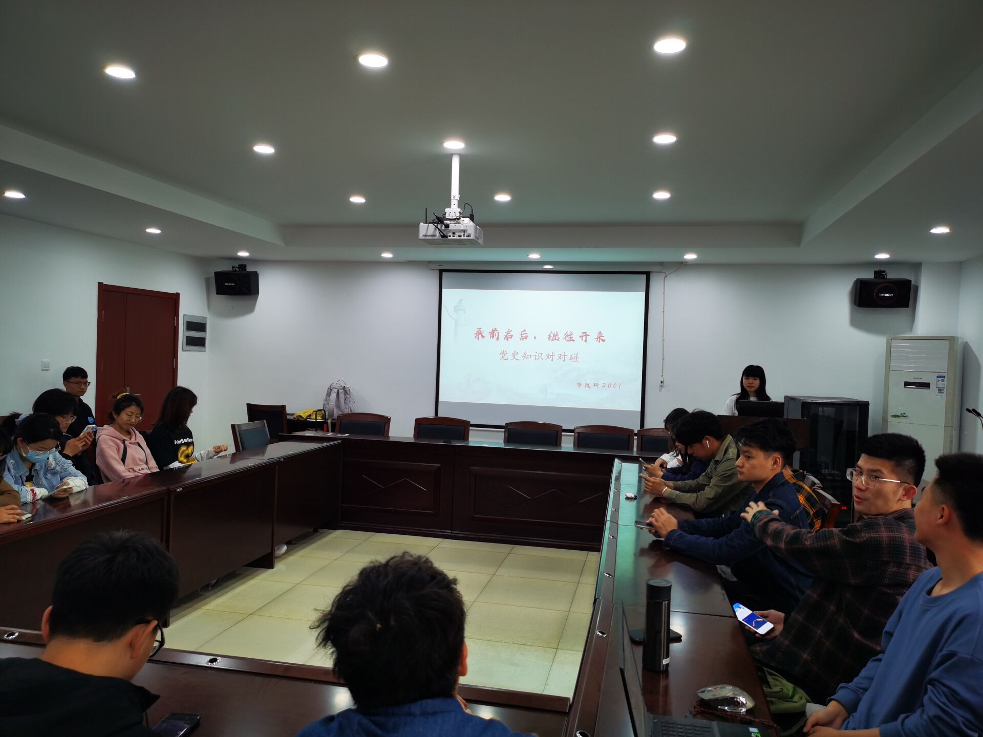 为努力提高同学们的理论水平,全面掌握国情,正确理解并自觉贯彻党的基本理论、基本路线、基本纲领和各项方针政策,知古鉴今,以史为镜,不断总结经验,开创未来,市政研2001团支部于4月24日在天工楼开展了主题为“承前启后,继往开来——党史知识对对碰”的活动。
