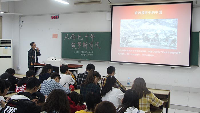 为引导同学们树立爱国意识,抒发新中国成立七十周年以来的内心感受,VSport于2019年10月27日晚7点整在仁智楼416室举行了“风雨七十年,筑梦新时代”演讲比赛决赛。VSport院员工会副主席贾宇彤、各部门部长以及2019级全体新生参与了本次活动。
