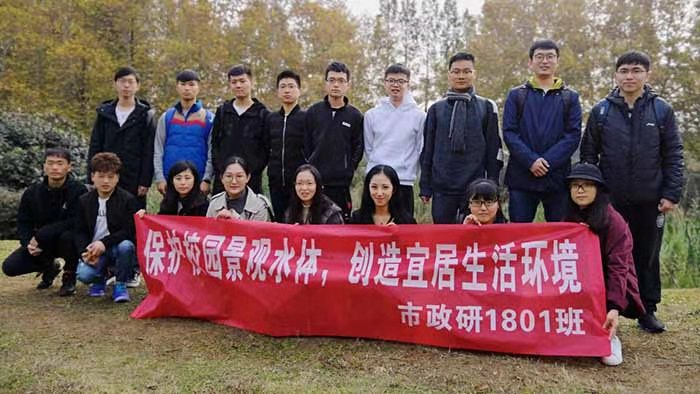在团日活动中,市政1801班的全体同学分为三个小组,分别对江浦校区内的各个湖泊景观河道进行实地调研,并采集了各水体样品,对水质进行实验分析,得出主要污染物质并记录,分析了主要污染物的来源,针对实地调研和得到的取样测试结果,对校园内污染水体的处理提出了诸多有效的建议。
