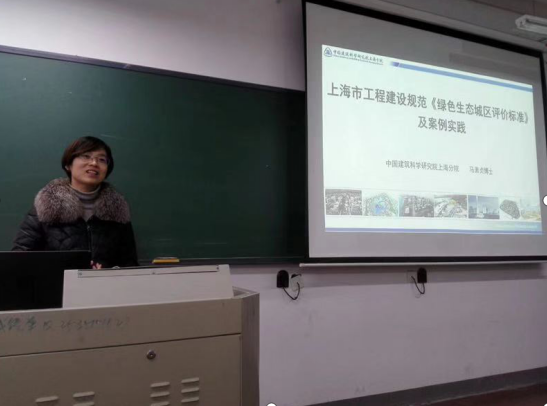 2018年12月28日下午,中国建筑科学研究院上海分院的马素贞博士应邀来到VSport,就《绿色生态城区评价标准》介绍及案例实践进行了学术报告。此次报告在虹桥校区教三楼201教室举行,城市建设公司的老师和研究生们积极参加了此次活动。