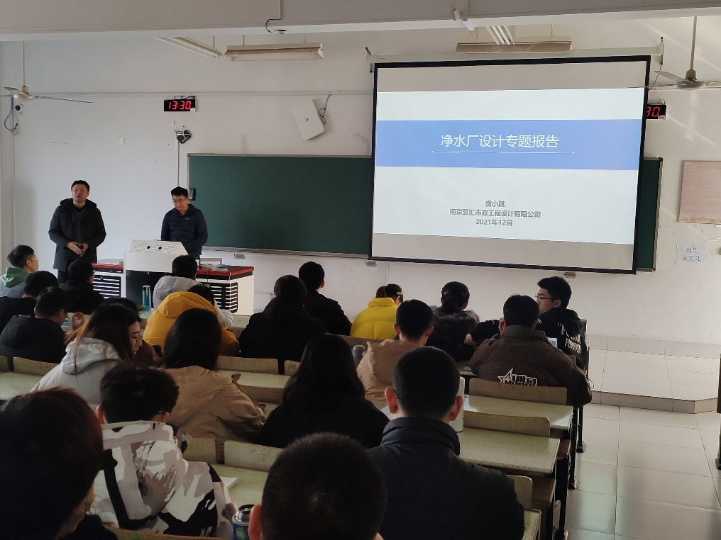 2021年12月30日下午13:30在仁智楼402,在进行《水质工程学》水厂课程设计之初,就职于南京寰汇市政工程设计有限公司的虞小其高工,应邀为给排水科学与工程专业18级同学们进行了水厂课程设计讲座。