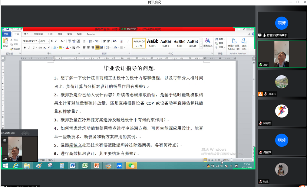 毕业设计是建筑环境与能源应用工程专业的专业知识融汇和应用实践的重要环节,是提高员工工程实践和创新能力最为关键的一个环节。2022年4月13日暖通系有幸邀请到江苏省建筑设计研究院有限公司夏卓平总工通过在线形式给暖通系毕业设计指导老师做了一场精彩的毕设讲座,这对提高指导教师工程实践能力和2022届毕业设计质量都具有重要意义。