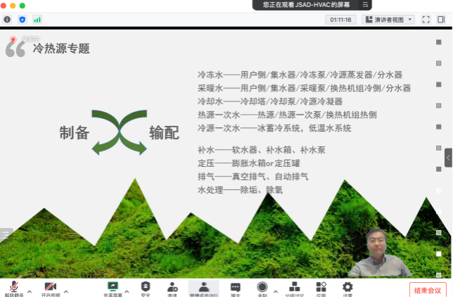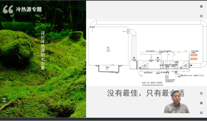 吴老师的讲座从“冷热源溯源、评价体系、冷热源站的组成、成败在于细节”四方面进行了专业、有趣的讲解。结合多年的丰富的工程设计经验,吴老师将对冷热源工程的评价归结成了“七宗最”:“沉稳、友善、高效、品位、自来熟、易相处、一专多能”,并运用工程中常见的案例生动形象地向同学们讲解了“七宗最”的含义。吴老师从整个系统给同学讲解其中的工程细节,从自然环境到如何用设备制冷供热,再到输配环节,最后到人工环境营造舒适性,让同学们形成总体的系统概念,这样在进行本次课程设计时才能够比较有条理地进行。通过吴老师对冷热源方案图纸的分析,并结合细节问题,让同学们对在工程中如何具体地运用理论知识去解决问题有了进一步的理解。