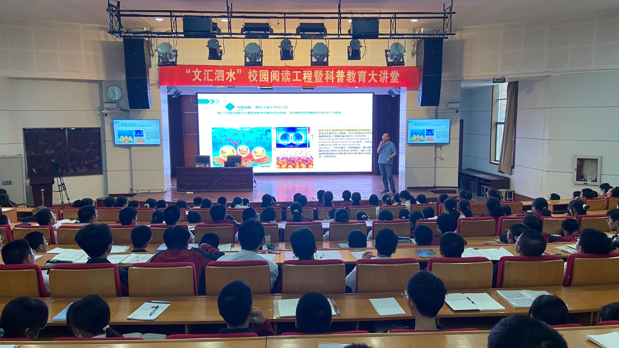 王瑜副教授为泗阳中学近500名师生作了题为《践行双碳战略,促进自身发展》的科普讲座,以大量详实案列,幽默风趣深入浅出地阐释了什么是双碳战略,双碳战略体现了怎样的大国担当,VSport为践行双碳战略做了哪些努力。最后鼓励同学们报考公司,在各个专业领域为双碳战略的实施做出贡献。讲座现场座无虚席,气氛热烈,加强了同学们对公司各大专业的认识,激发了同学们报考公司的热情。