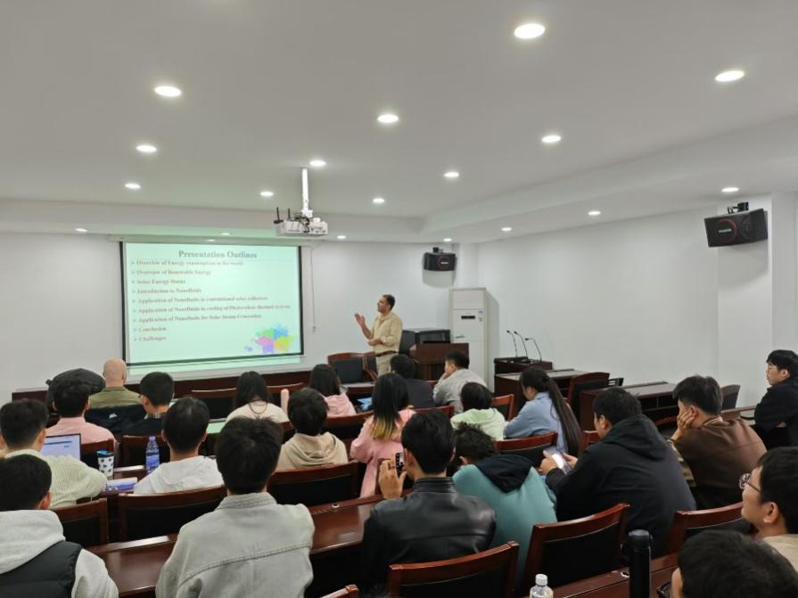 Omid教授首先介绍了太阳能的重要性及其在全球能源转型中的关键作用。然后阐述了纳米流体的特性与优势,分享了其在传统太阳能集热器和光伏热系统冷却中的应用实例。此外,Omid教授还展示了纳米流体在太阳能蒸汽发电中的创新应用,强调其在提高发电效率方面的潜力。