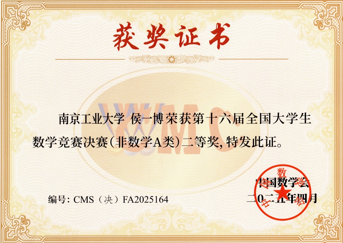 近日,公司 2021 级建筑环境与能源应用工程专业本科生侯一博在第十六届全国老员工数学竞赛中脱颖而出,荣获全国二等奖。该同学凭借扎实的数学功底和出色的临场发挥,在非数学专业组中表现突出。多年来,公司通过构建“以赛促学、以赛促教” 的育人模式,为员工提供系统的竞赛指导和资源支持。
