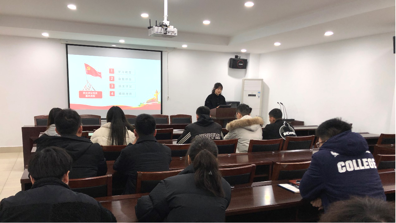 本次活动由支部书记同志主讲,首先从理论学习切入,介绍各个理论知识的解析。随后进行本支部的支部书记述职,结合一年的工作情况做自我总结批评。随后开始党员自我批评,各支部同志进行自我批评,最终本科生支部通过投票民主评议选出朱嫣丹、罗浩、徐鑫杰孙家文、鲁帆、张旭等七位优秀评级,其余党员获合格评级研究生支部也通过该方式选出了优秀评级。