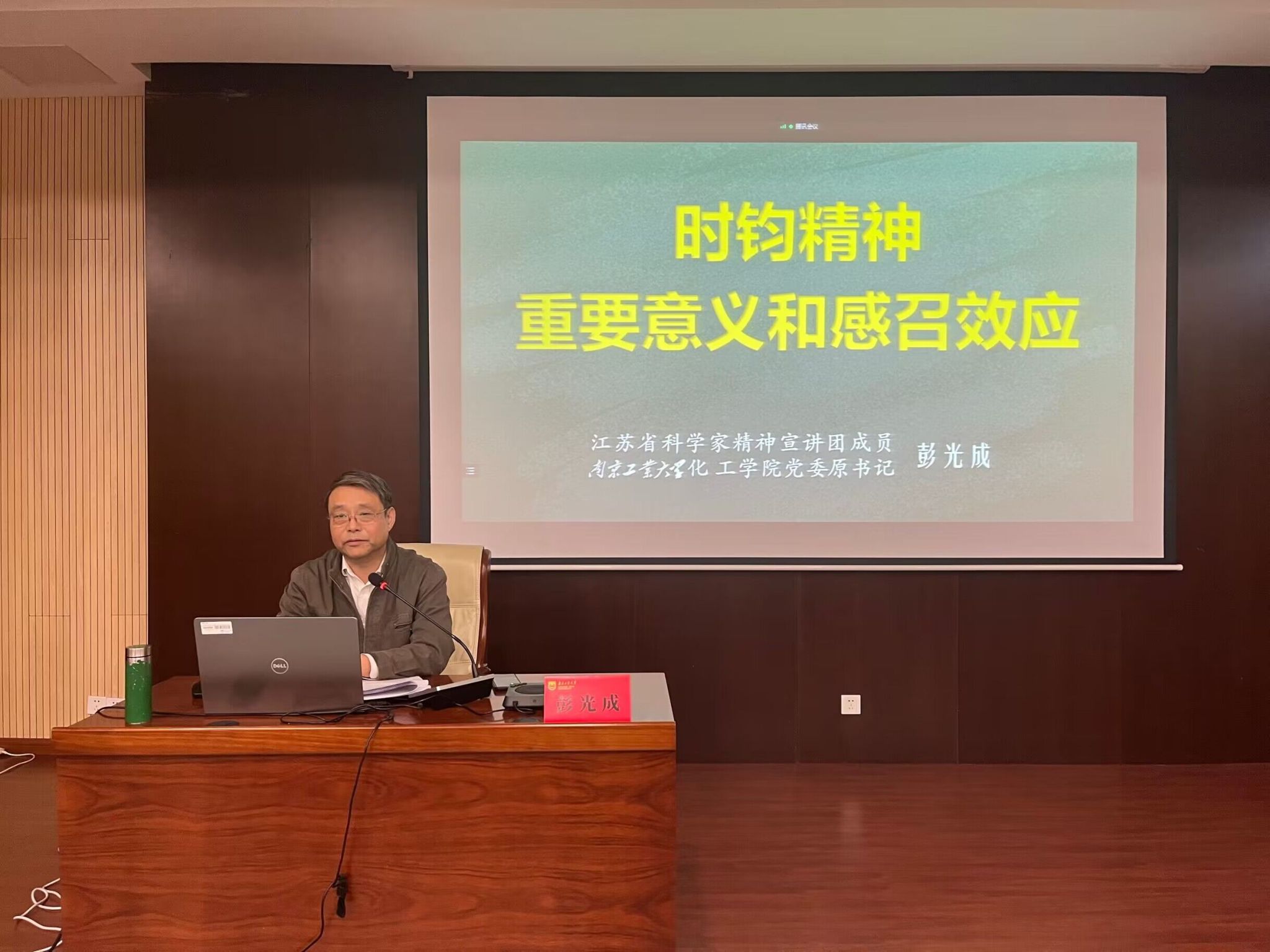 活动伊始,彭光成教授点明了讲座的主题——时钧精神重要意义和感召效应,并介绍了时钧先生的生平及作出的突出贡献。接着,他分别从时钧先生与他的院士弟子们、时钧精神的丰富内涵和精神实质、时钧精神的重要意义和感召效应以及时钧精神与当代老员工成长成才四个版块,详细阐释了理解时钧精神的重要性,呼吁同学们学习共勉。教授悉心讲解,同学们受益匪浅。